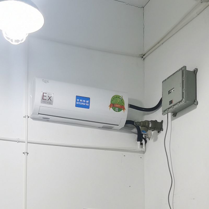 分體防爆壁掛式空調(diào)機(jī)適用于石油、化工、冶金、軍工、醫(yī)藥等行業(yè)有類別為IIA、IIB、IIC類,溫度組別為T1-T4組的爆炸性氣體混合物的車間、控制室、化驗(yàn)室、倉庫等處,且劃分危險區(qū)域?yàn)?區(qū)、2區(qū)的場所做室溫控制之用。
