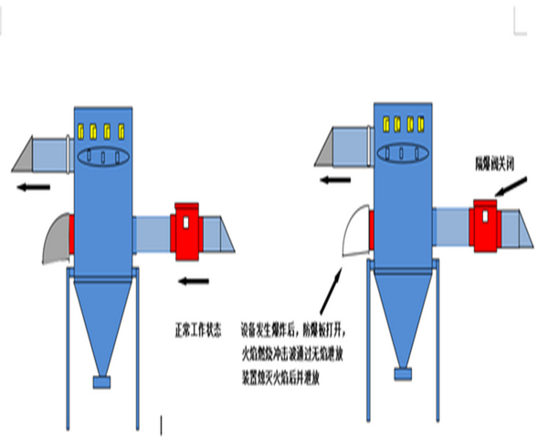 一、除塵防爆設(shè)備:無(wú)焰泄放裝裝置設(shè)備原理: